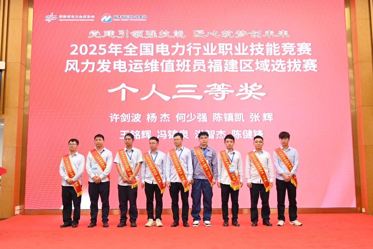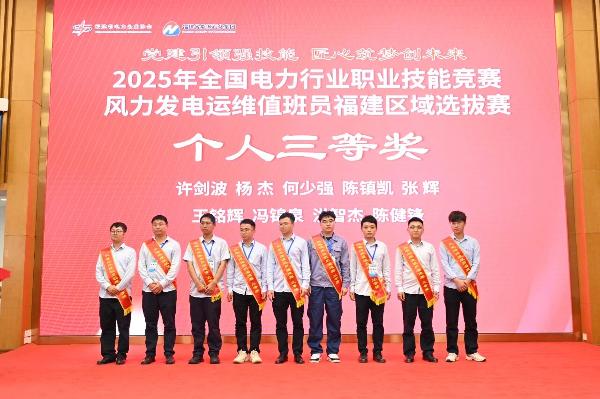 近日,在2025年全国风电运维值班员技能竞赛福建区域选拔赛中,晋江气电金井风电场代表队获团体三等奖,运检员洪智杰荣获个人三等奖,该风电场在外部高水平技能竞赛中奖项实现“零突破”。