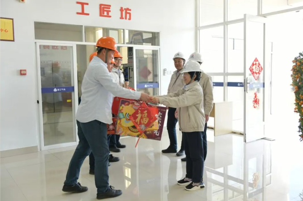 骏马迎春新年到,基层慰问暖人心。近日,晋江气电公司党委书记、董事长周颖驰率领导班子到各部门和班组,开展新春基层慰问活动,看望值守一线的生产人员,献上亲切的问候和新年的祝福。